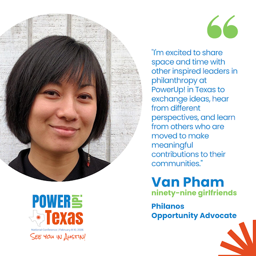 Congratulations to Van Pham, being honored by our national network, Philanos, for her outstanding work! An early graduate of our Fellows Program, 6-year member, and leader, Van is now a Philanos Opportunity Advocate. Van is the outgoing lead of our Impact Team, where she has helped shape our work over several years.